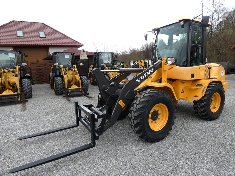 Ładowarka kołowa używana VOLVO L30G, rok prod. 2016, org. przebieg 5.307 MTG., wpisujemy na fv, Serwis ważny do 5.500 mtg., ładowarka z dużej dobrej firmy, sprowadzona z Niemiec, nie pracowała w Polsce, na wyposażeniu łyżka + widły na szybkozłączu hydraulicznym, sterowana dzojstikiem, Silnik Volvo 4 cyl., silnik, hydraulika jazda w super stanie, Oryginalny lakier oprócz obciążnika, i malutkich zaprawek, jest sztywna nie wybita, bez luzów i bez wycieków, Ładowarka pięknie utrzymana i zadbana, Opony 405/70R20 dobre 70%, stan ogólny SUPER STAN !